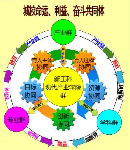 深化校城共同体理念,以推进卓越人才培养目标协同等“五大育人协同”为关键抓手,深化专业群等“四群互动”,探索适用新工科卓越创新人才培养的多元协同育人模式,推进“三链融合”,探索构建校政企多元合作、互利共赢的混合所有制现代产业学院的长效发展机制。