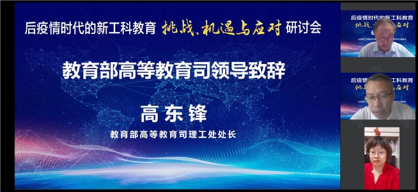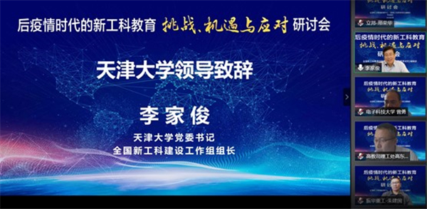 本站讯(通讯员 刘坤 张志金)新冠肺炎疫情对未来世界经济社会格局产生重大影响。为分析后疫情时代新经济、新产业、新基建发展对工程科技人才的新需求,研讨新工科教育面临的新挑战、新机遇,催生中国工程教育发展的新方向和新内涵,2020年8月2日,在教育部高等教育司、工业和信息化部中小企业局的指导下,全国新工科教育创新中心与《高等工程教育研究》编辑部联合召开“后疫情时代的新工科教育:挑战、机遇与应对”研讨会,会议以线上形式进行。天津大学党委书记、全国新工科建设工作组组长李家俊出席会议并致辞,教育部高等教育司理工处处长高东锋、工业和信息化部中小企业局创业创新服务处处长廉莉出席会议并分别致辞。天津大学副校长巩金龙出席会议并作会议总结。来自工程教育界的专家学者、产业界的优秀企业家以及来自全国251个单位的近600名教师、学生及产业界代表参会。会议得到政产学研各界高度关注,同步开通了在线直播。会议由全国新工科建设工作组成员、天津大学新工科教育中心主任顾佩华和全国新工科建设工作组成员、《高等工程教育研究》常务副主编余东升主持。