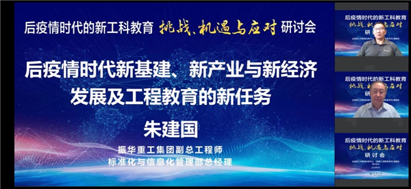 二是新时代新人才需求召唤新工科教育变革创新。春江水暖鸭先知,产业界对人才需求变化敏感。新工科教育离不开产业界的深度参与,产业界专家高度关注新工科教育。中国电子科技集团二所总工程师、首席专家郎鹏结合自身工作实践,谈了对新工科教育的认识和理解,提出了新经济特别是新基建发展对新科技人才的需求,并对新工科人才培养提出了建设性意见,如构建战略规划体系,引领高校新工科教育实施等。立邦投资有限公司副董事长、生产供应链高级副总裁邢荣华分享了对新基建、新经济的理解,介绍了立邦的中国智能制造如“生产4.0”“物流4.0”等创新实践,并结合企业改革发展实践提出了自己对新工科教育的理解,提出了立邦对工程教育的新需求。上海振华重工副总工程师兼标准化与信息化管理部总经理朱建国基于在多个专业领域深厚的专业背景,以及对于数字化制造业深刻的理解和洞察,分析了当前高校人才培养与企业需求之间的脱节现象,提出企业的标准化人才、数字化人才在企业发展中的作用,呼吁工程教育界加强标准化人才培养,从宏中微观三个层面开展系统性人才培养,提升人才培养与产业需求的契合度。中国航天科技集团软件研发中心副主任、中国载人航天工程软件专家组副组长程胜从产业的角度提出了推动新工科教育变革创新的建议,如强化教师产业实践经验和工程技术经验,加强学校、学生、企业三方的需求对接,切实提供实习实践的实效性等。