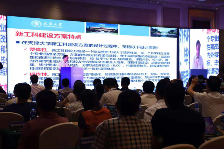 天津大学新工科教育中心主任顾佩华应邀参会,并发表“探寻新工业革命时代一流本科工程教育:天津大学新工科建设方案”主题报告。他指出,工程教育进入了快速和根本性变革时期,天津大学主动增强服务国家战略和区域发展的责任担当,推动新工科建设再深化、再拓展、再突破。在深入调研的基础上,天津大学提出了“新工科建设天大方案Coherent-Collaborative-Interdisciplinary-Innovation(CCII)”,以立德树人为根本、以学生发展为中心、以卓越目标为导向、以多学科交叉人才培养平台为依托、集合3类5种项目-模块化课程体系,从构建完备的新工科教育培养平台体系、持续优化新工科教育教学设计、建立健全新工科教育培养平台评价反馈系统等方面提出了关键举措,是融合中国特色的新文理教育与多学科交叉的工程教育。