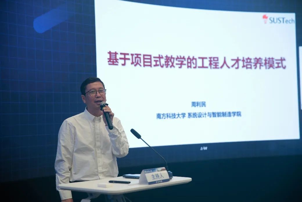 南方科技大学系统设计与智能制造学院副院长周利民带来题为《基于项目式教学的工程人才培养模式》的报告,聚焦南科大新工科教育实践,介绍了在多学科融合中实现知识与能力同步培养的基于项目式教学的人才培养模式以及多学科深度融合的课程建设模式,指出要以学生为中心进行多学科交叉融合的多层次项目引导式教学,在教学中引入关注学生发展的过程性评价,从而培养学生解决复杂工程问题的能力。