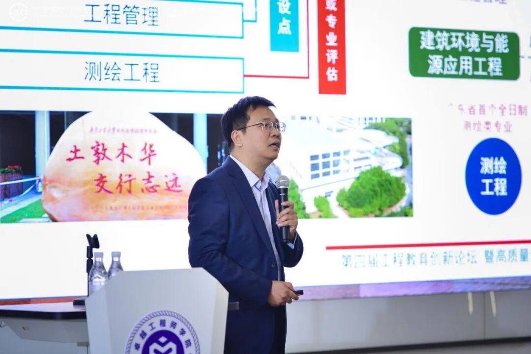 广东工业大学土木与交通工程学院副院长,广东省土木类专业教学指导委员会委员何嘉年分享的报告是《工程教育专业认证背景下基于OBE理念的课程体系重构与教学实践探索》。报告首先回顾了OBE教学理念涵盖成果导向、学生中心、逆向设计、需求驱动的核心理念,接着以广东工业大学土木工程专业为例,从课程体系重构、课程教学实践和实践成效三方面介绍OBE理念的落实,提出推进“育人本位、学生本位、需求本位”的“三本位”教学理念、优化“学科融合、产教融合、科教融合”的“三融合”育人路径、构建“校内协同、国内协同、境外协同”的“三协同”培养模式等重要思想。