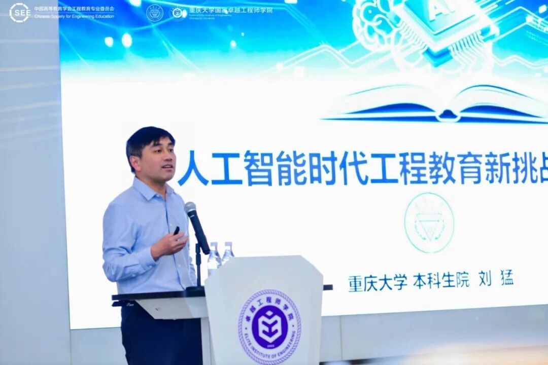 重庆大学本科生院院长、刘猛教授作了题为《人工智能时代工程教育新挑战与重大探索》的报告。他介绍了重庆大学为应对人工智能时代的到来,在人工智能通识核心课建设、课程体系重塑、资源建设、专业革新四方面开展的创新实践,并提出了要强化评价标准向原创性和产业转化度侧重,培养重点向AI协作策略和伦理判断力侧重,核心能力向问题洞察力和跨域迁移能力侧重的未来变革方向。