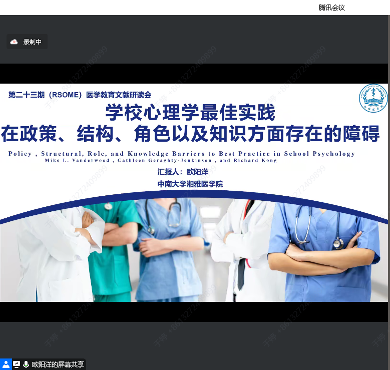 欧阳洋副教授对第十六章“学校心理学实践在政策、结构、角色以及知识方面存在的障碍”章节进行了解读,介绍了美国学校心理学发展历史、现实障碍及提出的改进建议及思考,强调了学校心理学在日常教育中的重要作用和建立学校心理健康服务教育体系的重要意义。