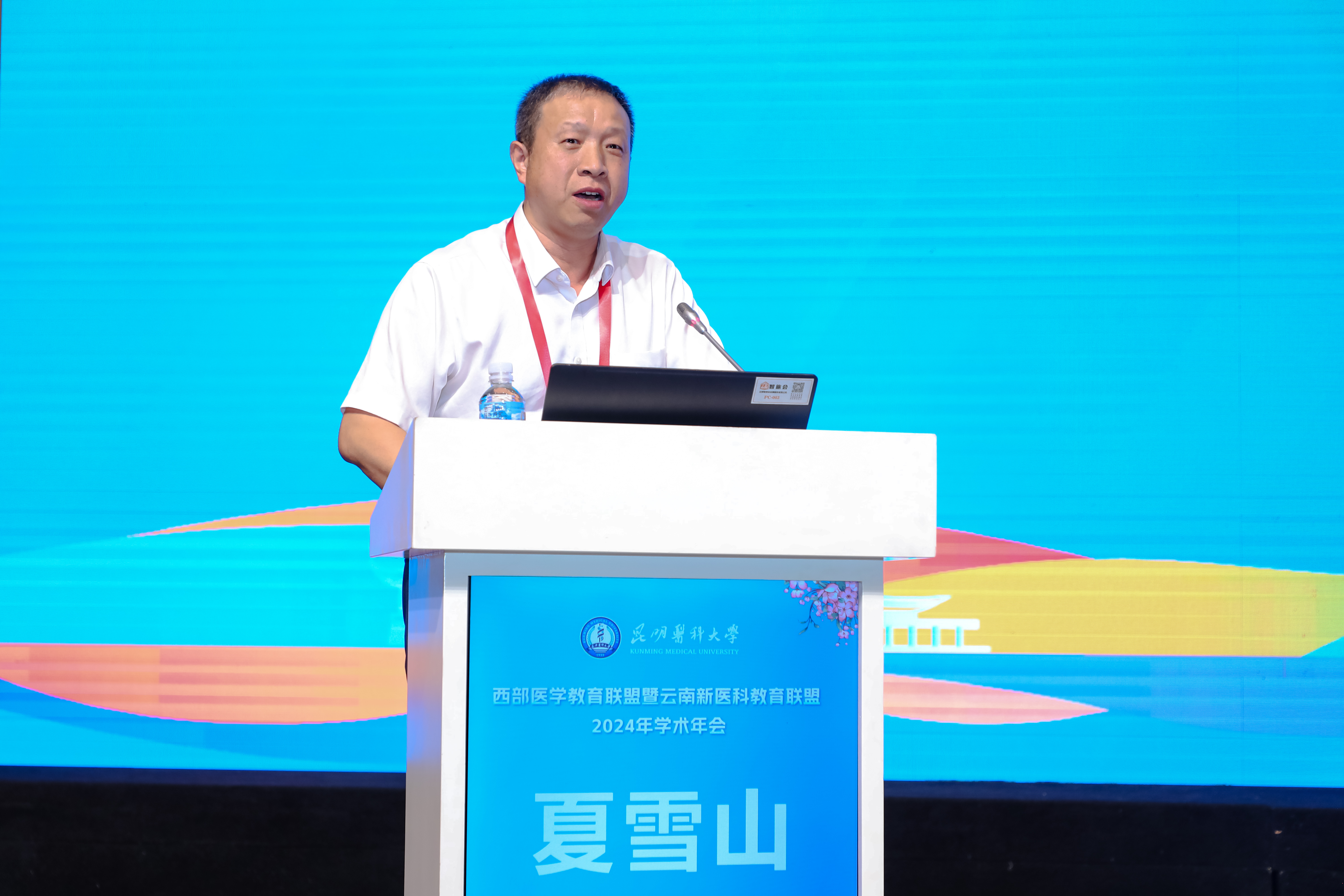 西部医学教育联盟发起人、西安交通大学原副校长颜虹,上海交通大学医学院副院长牟姗,昆明医科大学校长夏雪山等专家分别以“数智赋能 医工交叉发展新质生产力 推进西部新医科建设”“新医科的探索与实践”“深耕边疆医学沃土 培养创新医学人才”为题作专题报告,并就临床教学同质化建设、科教协同、产教融合等在医学人才培养中的实践进行了专题交流。昆明医科大学党委常委、副校长李利华、陆地参加会议有关环节。