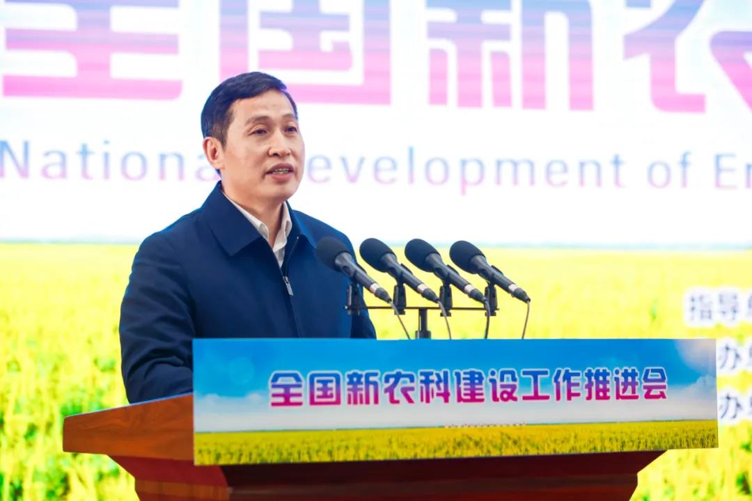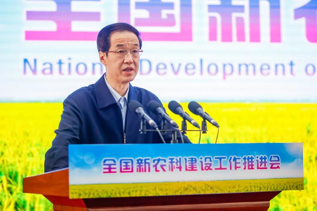 10月19日,全国新农科建设工作推进会在吉林农业大学举行。教育部党组成员、副部长钟登华,吉林省委副书记高广滨出席会议并讲话,吉林省副省长安立佳,国家林业和草原局总经济师杨超,农业农村部科技教育司副司长孙法军,国家乡村振兴局开发指导司一级巡视员吴华,吉林省委副秘书长盛效儒,吉林省教育厅厅长王忠,吉林省政府总督学岳强,吉林农业大学党委书记张殿锋、校长冯江,全国脱贫攻坚楷模、中国工程院院士李玉出席会议。会议由教育部高等教育司司长吴岩主持。