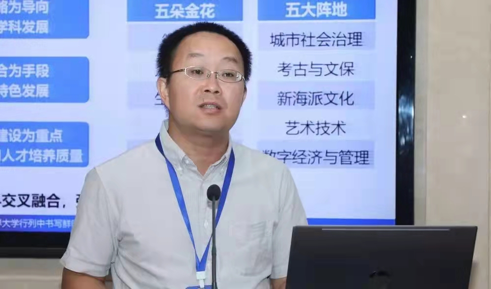 安徽师范大学发展规划处处长桑青松分享了安徽师范大学在推进科研创新和创新成果转化方面的相关成果,他表示,文科教育必须要依靠文科发展,提升综合国力、坚定文化自信、培养时代新人、建设高等教育强国、文科教育融合发展都需要新文科。新文科要突破小文科思维,构建大文科的格局。既要传承传统又要融合创新,实现知识性和价值性统一。既要打破学科壁垒,实现跨学科、多学科交叉融合发展,又要彰显文科性质,在新文科建设中突出文科自身的中心地位。