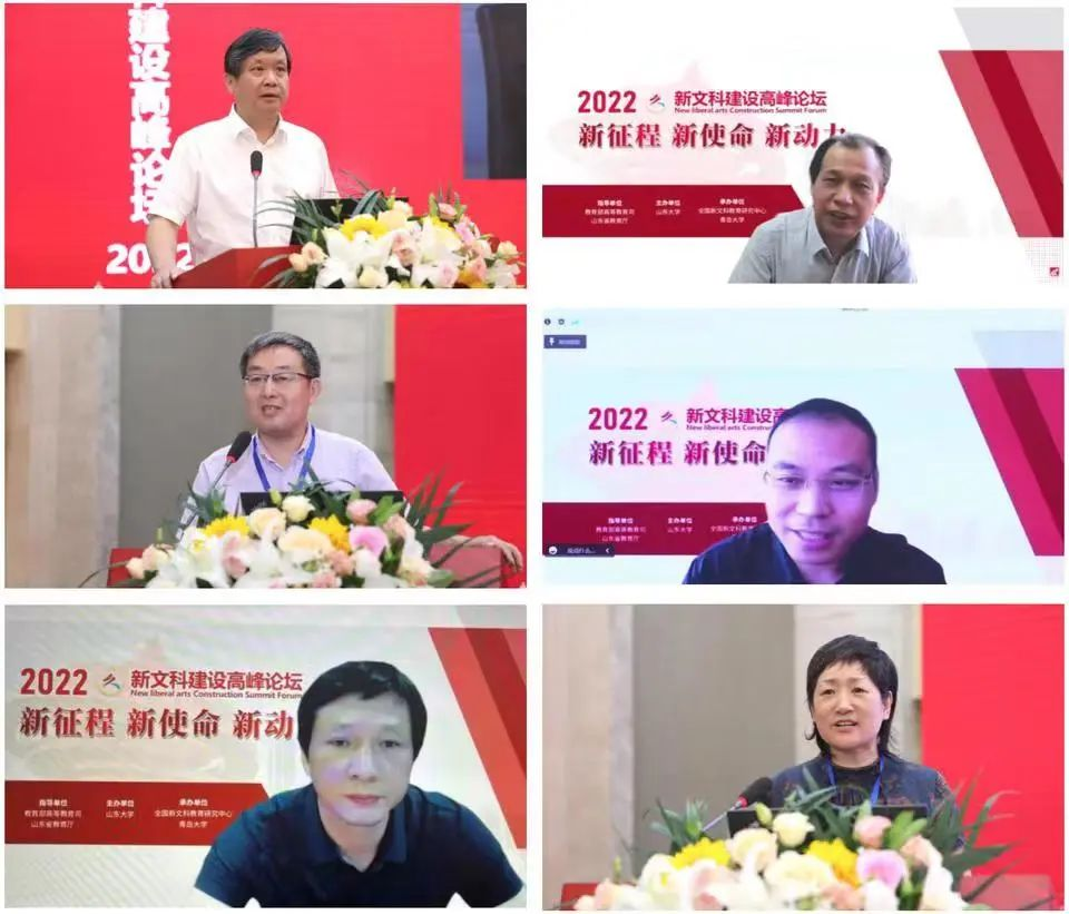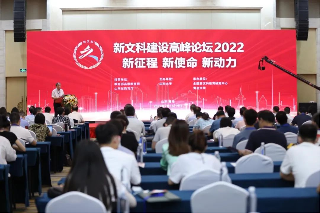 为深入贯彻落实习近平总书记在中国人民大学考察时的重要讲话精神,推动新文科建设再深化、再出发、再突破,7月18-19日,由教育部高等教育司、山东省教育厅指导,山东大学主办,全国新文科教育研究中心和青岛大学承办的“新文科建设高峰论坛2022”在山东青岛召开。山东省委教育工委副书记、省教育厅党组副书记、副厅长白皓,青岛大学校长夏东伟出席活动并致辞。
