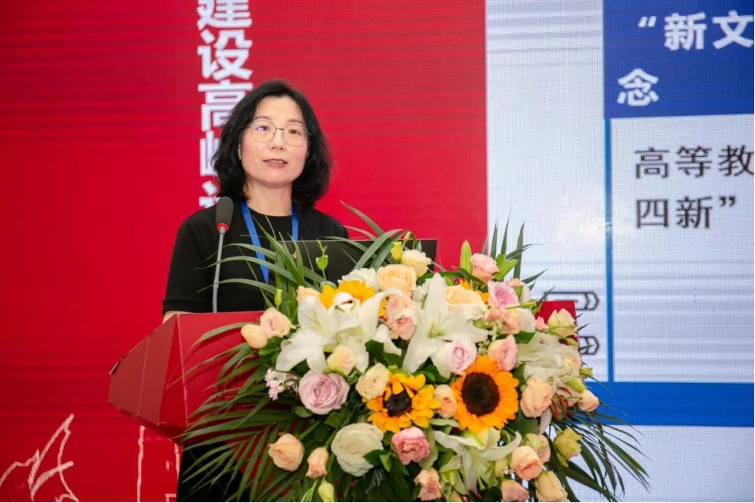 樊丽明以“新文科建设实践中的重点难点问题”为题作主题报告。她指出,在全国新文科建设工作者的共同努力下,新文科建设已从星星之火发展成燎原之势,未来要聚焦文科教育高质量发展,推动新文科建设走深走实、行稳致远。她从育人与科研、教学改革设计、要素保障、制度创新四个方面探讨了新文科建设实践中的重点难点问题。她提出,新文科建设既承载着培养世界水平、中国特色文科人才的根本任务,也担负着推进哲学社会科学重大理论研究和学科建设的重要使命,必须将人才培养与科学研究紧密结合,统筹推进。她指出,新文科建设是一项系统复杂工程,重在改革创新教育教学体系,即教学改革设计、资源供给和管理体制机制等。她强调,教学改革设计是新文科教育教学体系构建的重点任务,要遵循“需求导向、学校定位、资源整合”原则,抓住“新专业、新课程、新模式、新教法”核心内容;要建立优秀教师队伍,打造优质实验平台,充分利用数字化教育平台学习环境及资源,为新文科建设提供有力的要素保障;要创新教师考核激励制度、学生教育的贯通协同制度和教学科研单位激励制度,对教学科研单位和师生实行“放管服”,激发改革动力活力。