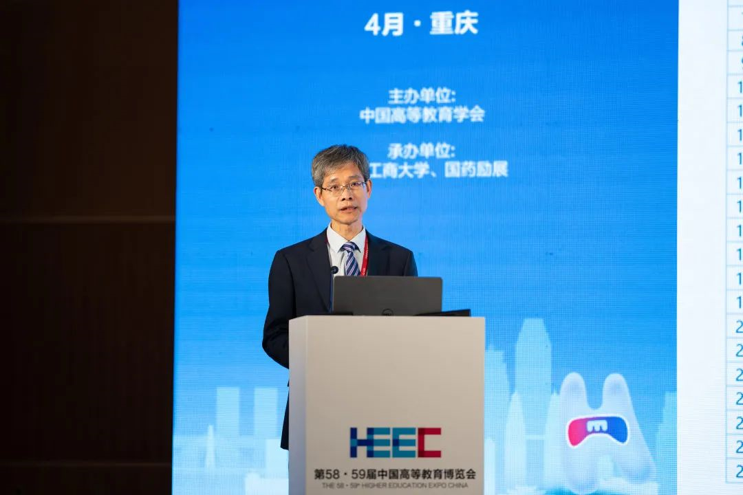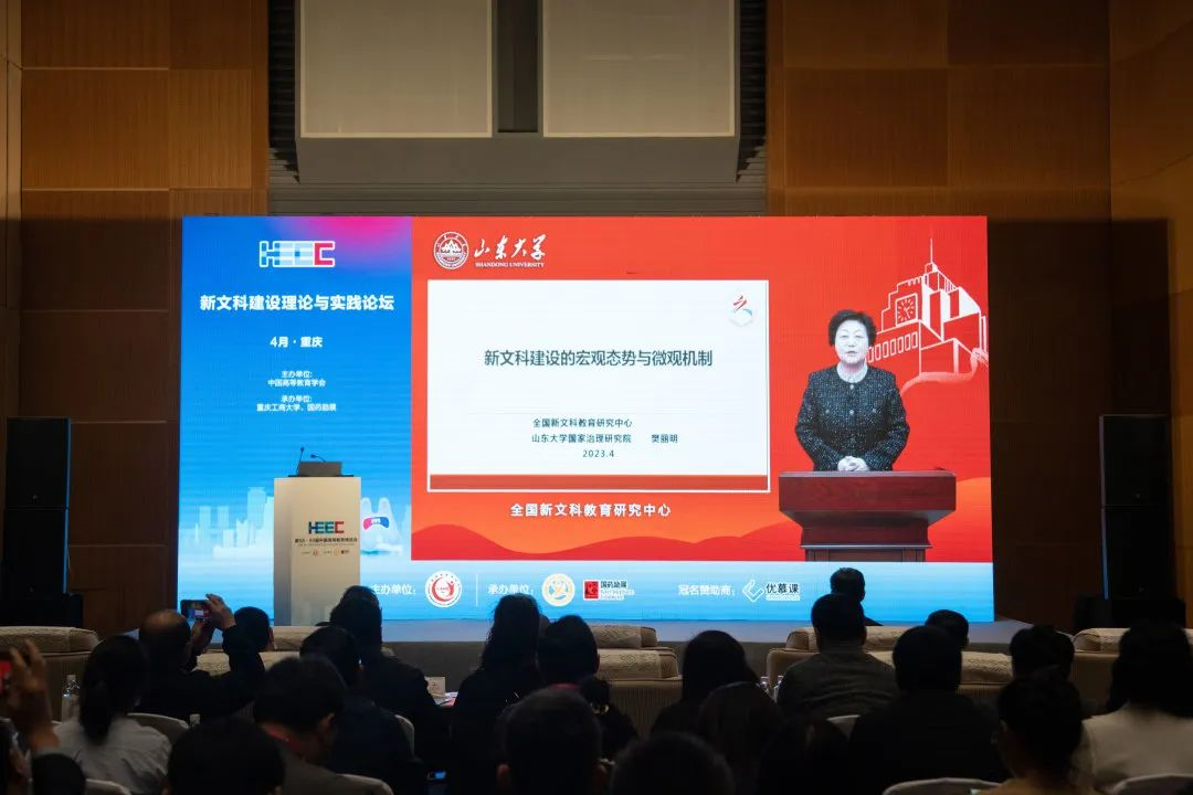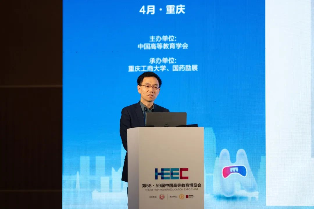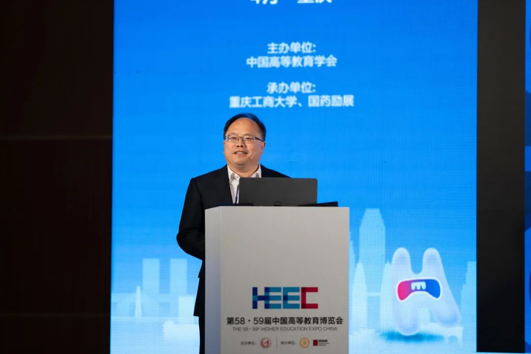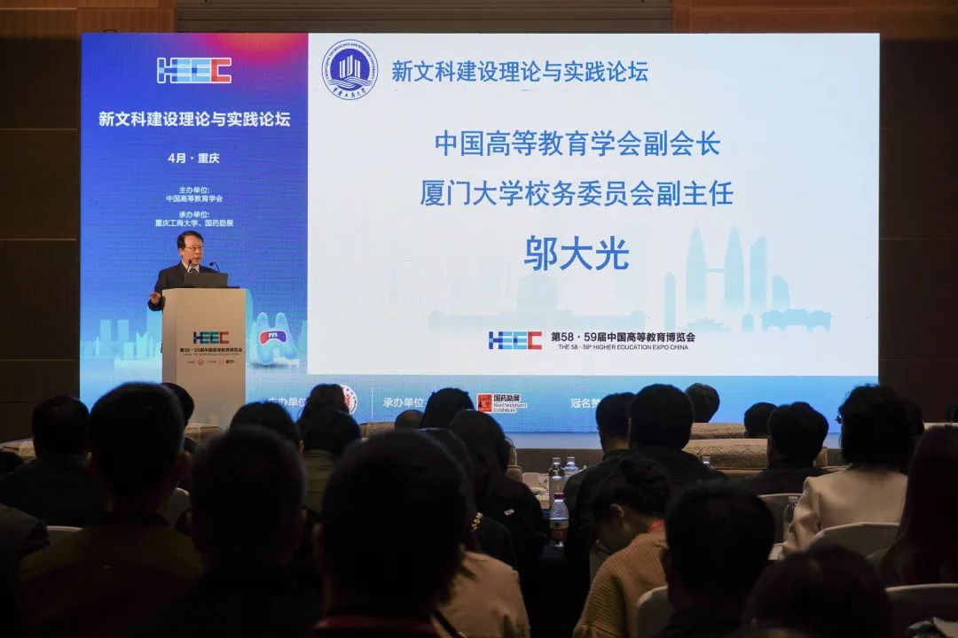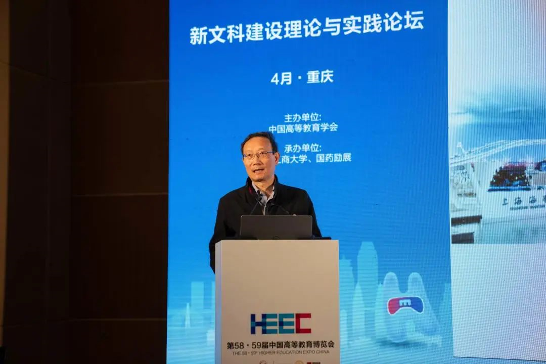 4月8日,作为第58·59届中国高等教育博览会的主论坛之一,新文科建设理论与实践论坛在重庆悦来国际会展中心顺利召开。中国高等教育学会副会长、厦门大学校务委员会副主任邬大光教授,教育部新文科建设工作组组长、山东大学原校长樊丽明教授,教育部新文科建设工作组副组长、教育部高校物流类专业教学指导委员会主任、上海海事大学原校长黄有方教授,教育部经济与贸易类教指委主任委员、对外经济贸易大学党委副书记、校长赵忠秀教授,国务院学位委员会工商管理学科评议组成员、教育部工商管理类专业教指委委员、浙江工商大学党委副书记、校长王永贵教授,吉林财经大学党委书记孙杰光教授,教育部工商管理类专业教学指导委员会委员、重庆工商大学原校长孙芳城教授,教育部金融类专业教学指导委员会秘书长、中央财经大学党委常委、副校长李建军教授,国务院学位委员会工商管理学科评议组成员、东北财经大学党委常委、副校长汪旭晖教授,四川外国语大学党委常委、副校长严功军教授等200余人参加会议。大会以新文科与教育数字化为主题,聚焦教育数字化背景下的新文科人才培养模式改革,展开了深入探讨。论坛开幕式及上午阶段的主题报告由重庆工商大学党委常委、副校长李敬教授主持;下午阶段的主题报告由渭南师范大学校长张守华教授主持。