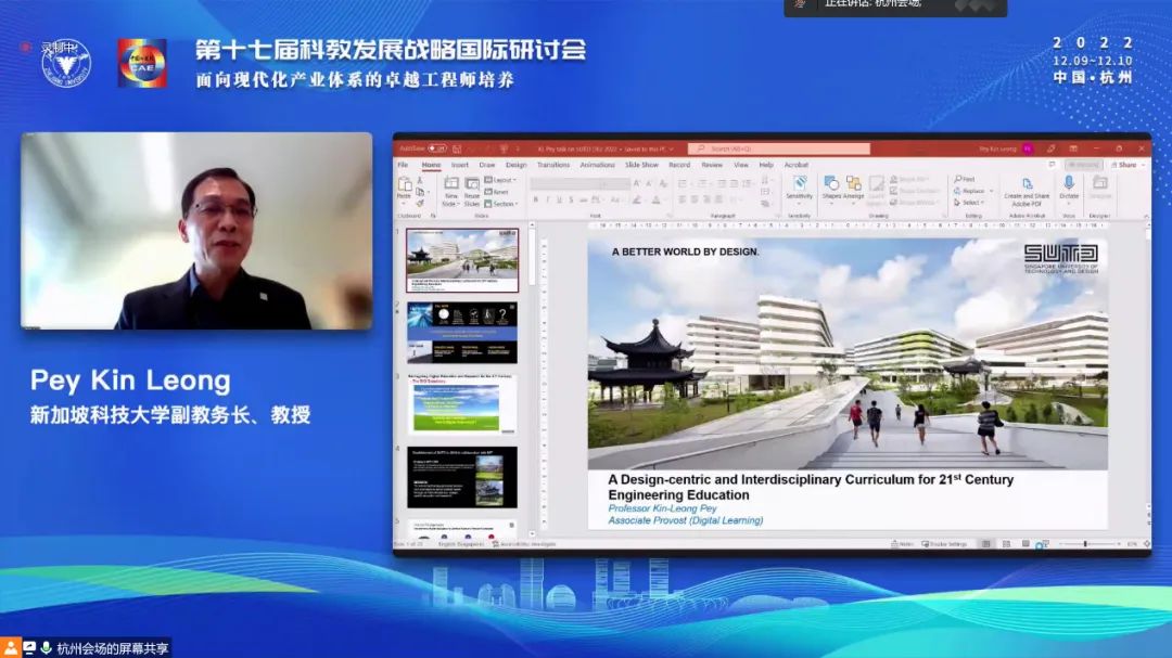 新加坡科技大学副教务长Pey Kin Leong教授做了题为《A design-centric and interdisciplinary curriculum for 21st century engineering education》。他着重介绍了新加坡科技大学与麻省理工学院合作的经验。新加坡科技大学致力于培养学生的敏捷性和坚韧性,为了达到这一目标,新加坡科技大学打破科学科学习的壁垒、采用以人为本设计服务社会需求、将数字技能作为基础、发展超越书本知识的技能和态度、向网络物理校园转型实现动力和终身学习以及加深学术与市场之间的联系。
